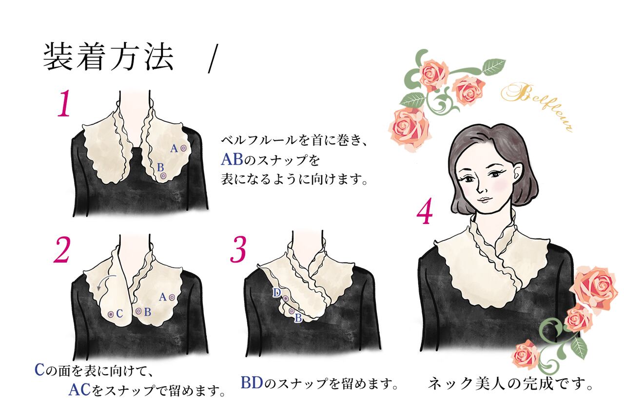 二重のフリルを閉じたり開いたりしてお使い頂ける、薔薇の花びらをイメージしたネックウェア。